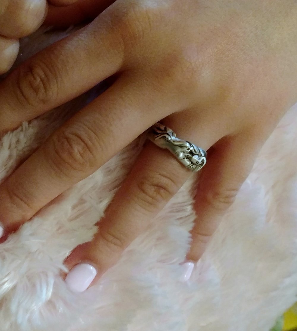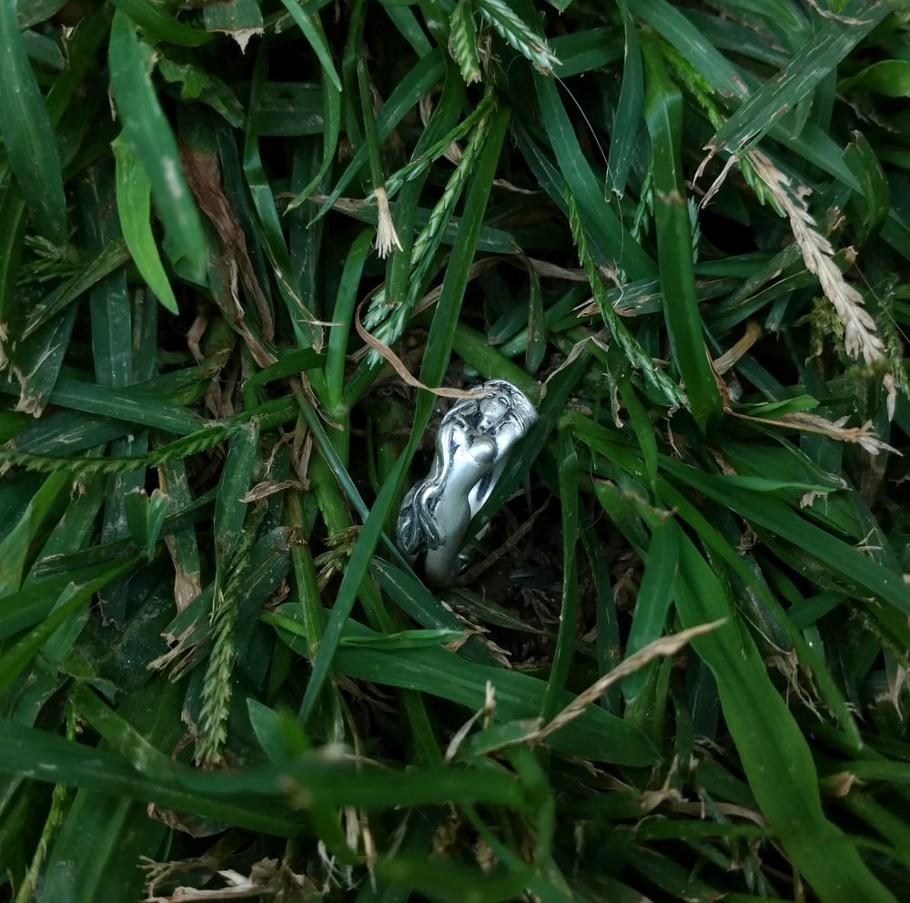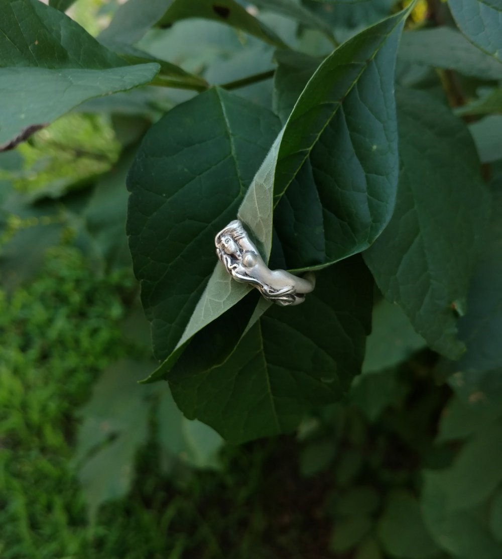 Handcrafted in USA in the style of Art Nouveau. This ring is made of solid sterling silver. Available in any karat, any color of gold and platinum. Please enquire if interested. Available in sizes 5 through 10. Priced here in Sterling silver, sizes 5 through 8.