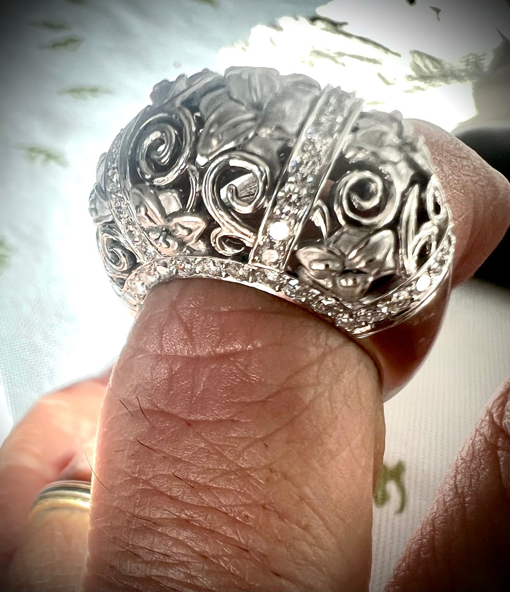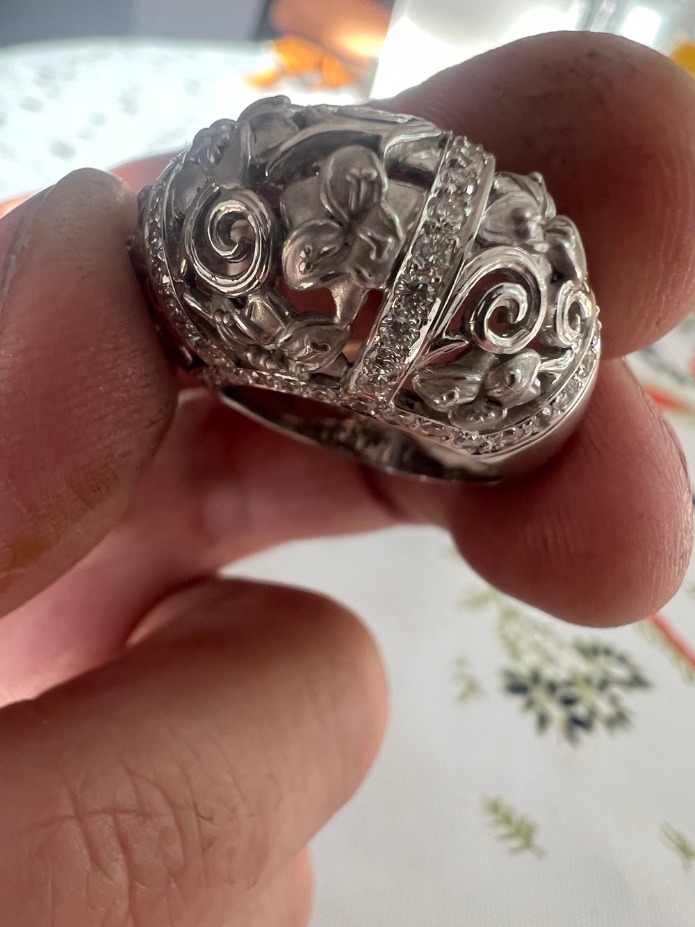 Stones: 59 round brilliant cut diamonds. VS1 clarity, G color